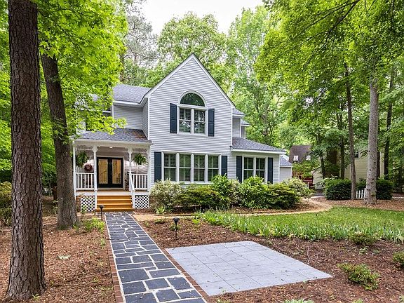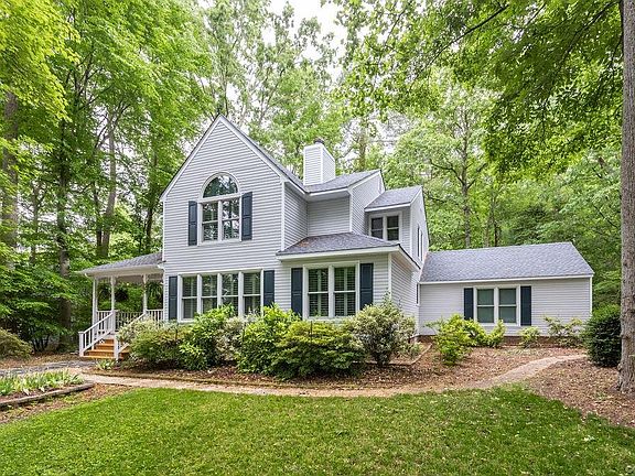 Unique transitional home with a Victorian flair. Featuring an open floorplan with sunken rooms, tall ceilings, THREE GAS FIREPLACES, and a bright eat-in kitchen with breakfast nook all located in a beautiful waterfront neighborhood of Woodlake. The abundant natural light makes this such a happy home! Enjoy the outdoors from your sunny solarium, screened porch, deck, or patio backing up to private wooded community-owned space surrounded by birds, deer, and abundant wildlife. The primary bedroom is huge with a vaulted ceiling, large bath, gas fireplace, walk-in closet, and additional closet. Recent upgrades include new HVAC, Replacement windows, new vinyl siding, newly paved driveway, new roof. Enjoy resort living 24/7 in this convenient and active lakefront community! Great schools and a fabulous lifestyle!