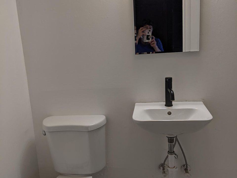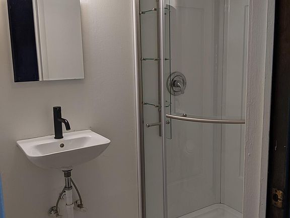 Newly renovated bathroom, charming and private upper floor studio in Hamilton, Tramore rd. (stickers have been removed, don't worry!) Studio building is located at the back of the house property, and is accessible by a separate gate off of the alleyway. House owners have a dog that frequently is let out to run in the yard, and does bark up a storm for a few minutes before being brought back in or played with. She is NOT friendly; do NOT approach her. There is a secure fence separating apartment entrances from yard and dog. Large room with kitchenette area, shower. $750 per month, utilities included. No smoking. References, security deposit required. For one renter only. No pets.