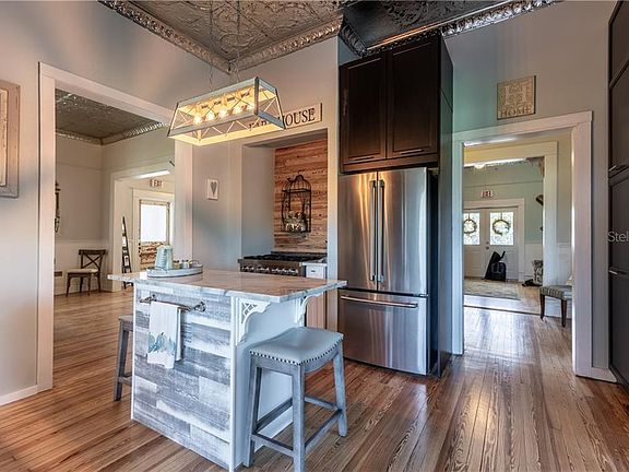 Commercial Or Residential Opportunity, Located on a .77 acre non-deed restricted lot zoned Neighborhood Commercial Medium & with 205 feet of US Highway 19 frontage & tons of parking. A grand entry with wrap-around porches, over 12 ft ceilings, areas of vintage hard wood floors, original stair casing, baseboards, decorative fireplaces, and early century aesthetics. The first floor features a large bedroom and en-suite with a HUGE walk-in closet, a formal dining, family room, great room, and inside utility. A 2018 renovated kitchen with oversized soft-close cabinetry, reach-in pantry, granite and quartz countertops, tile backsplash, and a bonus room that can become an extension of the kitchen. Make your way up the original grand staircase to a large master ensuite with two additional guest bedrooms, both with full baths. All of the electrical, plumbing, HVAC's were updated since 2003, with an oversized water heater installed in 2011. New Jamie Hardie Fiber Cement Siding and New Double Pane Hurricane resistant windows in 2020. Located just 5 minutes over the Skyway Bridge from St. Pete! Permitted Uses: Residential use, Agricultural Uses (Long-term/Short term), Assisted Living Facility, child care center/schools, group housing, Tree Farm, Animal Services, drive-through establishment, restaurant, retail sales, medical marijuana facility, bed and breakfast, printing services, clinic, food catering establishment, funeral services, loading services, office, medical office, veterinary clinic, banking services, dry cleaners, civic/social/fraternal organizations, cultural facilities, public use facilities, parking commercial, cemetery, recreation
