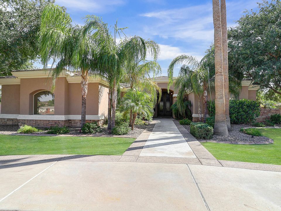 A spectacular setting awaits you in this elegant custom home that is surrounded by mountain views nestled on a private lot. Walk into luxury through the new Iron entry door. Lots of windows allow natural light and magnificent views of the luxurious backyard. Wood look tile through out the main living area and master bedroom. Kitchen has new espresso cabinetry, farmers sink, stainless steel appliances, cook top, chefs hood, double ovens, granite counters with a huge island for entertaining. There is a full dedicated gym area off the family room with a private patio. The master is split from the other bedrooms & has a walk in closet, remodeled bathroom with a jetted tub, fireplace, walk in tiled shower, new cabinets, granite tops and elegant chandelier perfect for relaxing. Walk out to the amazing backyard where you have an RV garage and a guest/pool house, Koi pond, Basketball court, playground with sand, built in BBQ with fire pit and seating area, lush landscaping and a huge grassy area for entertaining.The RV garage can house a 40ft long RV has a clean out and still plenty of room for a boat and much more. The guest house is a great room floor plan with a bathroom and bar area with granite tops,cabinets and tons of windows overlooking the backyard The pebble tech pool is magnificent with a grotto waterfall, heated spa, in ground cleaning system and much more. This is a stunning property you don't want to miss!