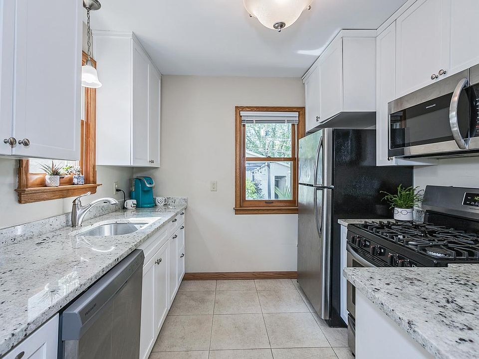 BEAUTIFULLY REMODELED HOME on a nice lot! GORGEOUS KITCHEN WITH UPDATED CABINETS, GRANITE COUNTERS AND SS APPLIANCES! Large foyer, nice living room, separate dining room, 2 good sized bedrooms and nicely updated full bath. POTENTIAL FOR MORE SQ FT IN THE UNFINISHED LOWER LEVEL. Updates galore including: exterior, kitchen, bath, windows, flooring, doors, elec panel and recently updated furnace, water heater and window treatments. Nice hardwood floors, tile floors and paneled doors. Large patio, fenced backyard and a HUGE 24 X 28 3-CAR GARAGE!!! Great location NEAR LAKE NOKOMIS and parks, plus easy access to shopping, restaurants and more!