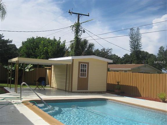 Beautiful pool home-move-in ready; just bring your furniture. Everything has been updated-no carpets; floors are: ceramic tile, custom epoxy bedroom floors; and wood parquet. Very open kitchen with lots of cabinets and stainless steel appliances. The new bathroom comes complete with a Jacuzzi tub. The landscaping and lawn is very well manicured with lots of tropical foliage such as your very own pineapple and 129 bananas. The back yard is very private with all fenced in stockade fence. Has a storage shed and pool cabana that has an attached large covered entertaining area great for BBQ's. This back yard is a dream come true for entertaining, including the 30 x 15 lap pool (20 gallon) which has just been resurfaced with crystalcrete and comes with a 10-year transferable warranty. This home also has a newer roof and newer air conditioner. The pool deck was just resurfaced with a custom concrete surface/sealer. The garage is extra deep for storage or workshop needs, but there is also an additional storage shed in the backyard. Interior and exterior of the home has been painted with high quality Sherwin Williams paint. Nothing was missed on this home, even the garage/driveway surfaces were just painted with 7 gallons of epoxy paint.