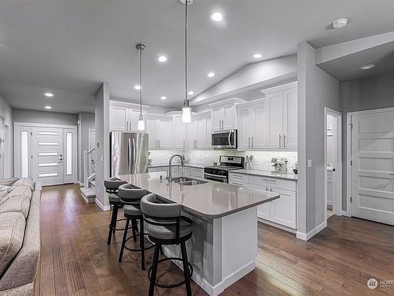 This immaculately maintained home is located within the highly desirable Salish Breeze bay-side community. Just a few minute stroll to the beach, it's a perfect setting for both fun & relaxation. Extremely well-designed floor plan features open-concept living space with lofty ceilings, tons of natural light, engineered hardwood floors and both a home office & spacious primary suite on the main floor. Fall in love with the stylish kitchen featuring a huge island w/quartz slab countertops. Upstairs you’ll find 2 more bedrooms and an oversized bonus room for 4th bedroom or family/movie/game room. Tandem 3-car garage. The fully fenced backyard provides a lovely way to spend time relaxing on the covered patio or soaking in the hot tub.