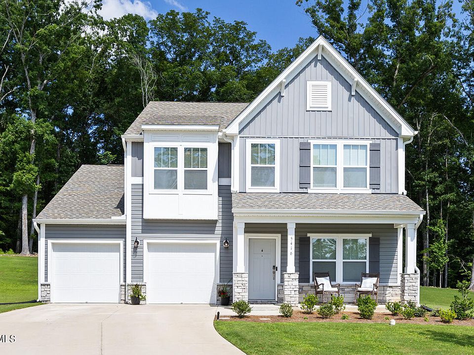 Who says you can't have it all?!? I betcha 5416 Beardsley Court will fit your needs effortlessly! The entertainer's kitchen serves as the heart of the home, offering generous counter space, an oversized island, and a natural connection to the living and dining areas—perfect for hosting friends or enjoying a quiet meal in. A dedicated office on the main floor provides a peaceful retreat for work or study, while a main-level guest suite with a full bath ensures comfort and privacy and ease for visitors. Upstairs, a spacious bonus/flex room opens the door to endless possibilities—whether you envision a media room, playroom, or convert into a 5th bedroom! The two-car garage offers convenience and storage, while the large lot provides room to breathe, take a look at the survey to see how just how spacious your new side yard will be! Tucked away at the end of a peaceful cul-de-sac, the private yard is a serene backdrop for morning coffee, evening gatherings, or weekend gardening. Just two years old and meticulously maintained, this home feels brand new. And when you're ready to step out, you're perfectly situated to enjoy the best of Durham—whether it's catching a show at DPAC (19 min), exploring the vibrant food scene downtown, playing a round of golf at Umstead Pines (10 min), swinging by Duke for a sporting event (17 min) or taking in the natural beauty of nearby parks and trails at West Point at the Eno (10 min). 5416 Beardsley Court has it all.