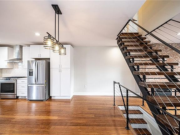 "ALL NEW, WITH A VIEW": Fantastic new home in upper Lawrenceville. The moment you walk in you get captivated with this super modern and chic atmosphere: Exposed brick, open floor plan, custom built wood and steel steps (custom welded on spot, just for this house ), fully equipped kitchen (with a wine cooler too). Balcony off the kitchen&2nd floor bedroom is providing breathtaking view of the city. LR with a fireplace. Master bdrm with exposed brick and barn door. Finished gmrm with full bath. Professionally landscaped with elaborate front yard, steps, fence and solar lights. In keeping with the Pittsburgh tradition, the multi-tiered staircase and garden are located on the "front of the house", while the single step from your car to the inside of the home is located on the "back of the house". Friends&family, and your letter carrier will know of the secret entrance while unwanted solicitors with give up after the first few steps and leave you in peace. Pittsburgh has given you a win.