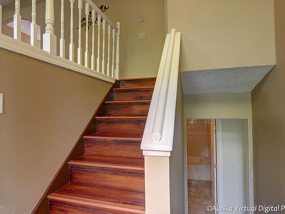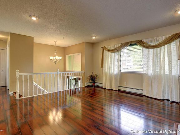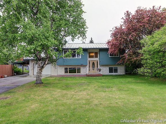 Plenty of sunshine in the fabulous south facing deck off the kitchen area, w/stairs to the backyard. This home features a metal roof, 4 Bedroom plus an office & family room. 1 car garage plus a carport. Great highway access and close to JBER. This home has been updated throughout and is move in ready. Come take a look. BTV all