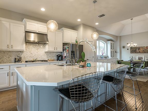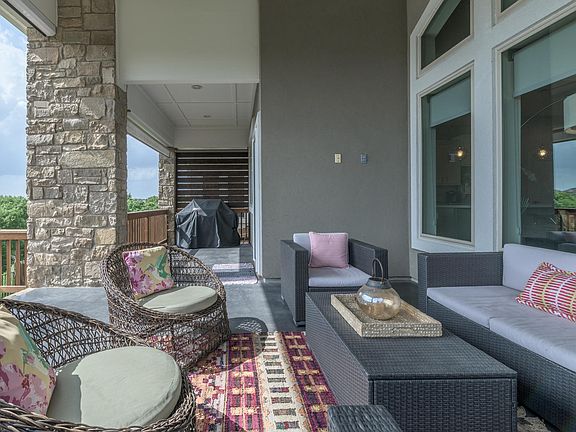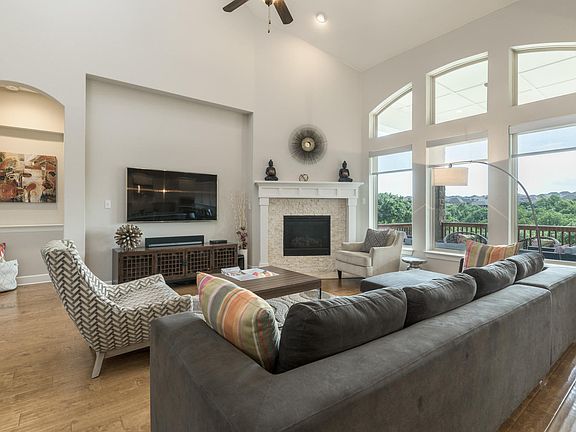 Rare find...incredible Hill Country views, gorgeous modern finishes, & master PLUS full guest ste on 1st floor! Distant views from master/kitch/family. Huge covd patio w gas, overlooking canyon. White quartz kitchen w marble herringbone splash & built-in stainless appliances, wide open to 2 story family room w wall of massive windows overlooking Hill Country. Wood floors, shutters, beautiful built-ins, glass door/raised ceiling office, 3 car garage. Perfect plan for entertaining. This is a showplace!!