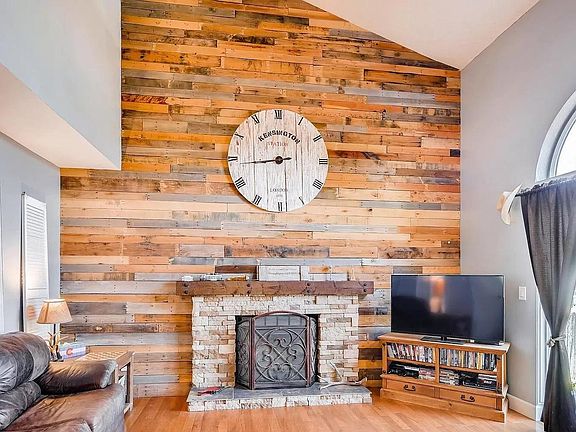 You'll feel right at home in this 3 bedroom 2 bathroom home with so many special touches... ship-lap wall, sliding barn doors, reclaimed wood wall, vaulted ceilings, stone fireplace, large deck and more! The house has other great features such as a newer roof and windows, master bedroom with a tiled walk-in shower and newer vanity and lighting. there are a total of 3 bedrooms and 2 bathrooms on the second level. Outside features a cozy front porch, and a large deck in the back yard with a privacy fence. 2 car garage for parking and storage. Tenant pays utilities. Small dogs may be considered on a case by case basis. No smokers.