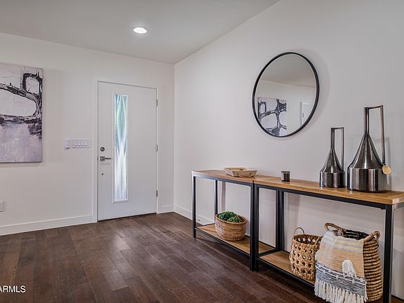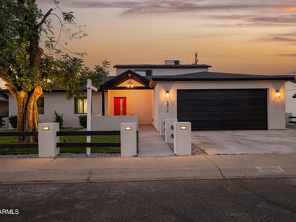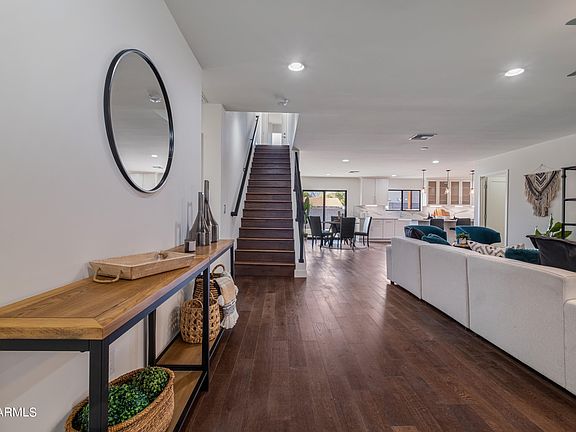 This lux 5-bed, 4-bath home underwent a remarkable permitted remodel and expansion 2023! As you step inside, you'll discover two master suites—one on the first floor and a second upstairs, featuring a private balcony with breathtaking views of Camelback Mountain. The three en suite bathrooms are a masterpiece, showcasing high-end finishes, beautiful tilework, and elegant fixtures. Throughout the home, the wood floors exude warmth and charm, enhancing its stunning appeal. The jaw dropping kitchen is equipped with a gas range, cabinet lighting, and a quartz island. The backyard is complete with a custom kitchen and turf. Seize the opportunity to make it yours!