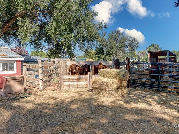 I’m Welcome to your own country farm. You will find here a fully renovated home with an open floor plan. New flooring, new kitchen, new bathrooms, new insulation, pellet stove and new well drilled 7 years ago. Enjoy the covered deck to sip your coffee in the mornings. You'll love all the outbuildings which includes a covered hay storage, barn, 2 car garage/shop, 1 car carport, and more covered storage plus the detached living quarters that offers extra living space and a half bath. Two RV hookups for power. One hookup includes a waterline and septic dump. Bring all your animals as the property is fully fenced for cows, goats, sheep, chickens and horses. The property is flood irrigated to keep the pasture nice and green. Split and sell one acre off or build another home. There are numerous possibilities with this property. The property was recently appraised at $780,000!