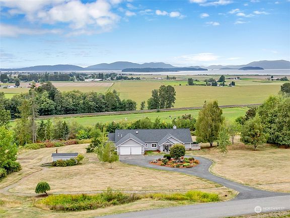 Enjoy panoramic views of Samish Bay & the Islands from this gorgeous, fully-updated home in sought-after Bow. An extensive remodel, just completed, includes NEW kitchen with quartz countertops & custom cabinets, NEW bathrooms, NEW heat pump, NEW windows, NEW roof, NEW wide-plank hardwood flooring, ceramic tile, carpet, & more! The one-level home is thoughtfully designed with two Primary Suites, both with private outdoor areas. The main living area features vaulted ceilings & an open floor plan perfect for entertaining. This is one of Bow's most desirable neighborhoods with custom homes on 5-acre parcels ensuring space & privacy. Savor world-class sunsets from the large west-facing deck & gently sloping backyard. No HOA!