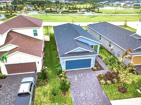 Built in December 2019, this STUNNING 3 bedroom/2 bathroom home is less than a year old and move in ready NOW!! Home features energy efficient appliances, low emissivity windows and spray foam insulation throughout saving thousands of dollars on utilities!!! Spacious sycamore floorplan showcases an open floor kitchen concept with beautiful granite countertops great for entertaining guests or casually dining with family on the kitchen island, generously sized bedrooms, double sink in owner's suite master bathroom, spacious master walk in closet, 18x18 porcelain tile, a built in termite system along with smart home features that include phone operated thermostat and front door lock controls. Enjoy a morning cup of coffee on the brick paved front porch or retreat to the newly screened covered lanai after a long day. Eaves Bend community is conveniently located near premium shopping areas and I-75 providing an easier commute to major employment destinations and is rich in amenities such as a resort - style swimming pool, a playground, walking trails, fitness center, a dog park, an expansive club house and much more!!