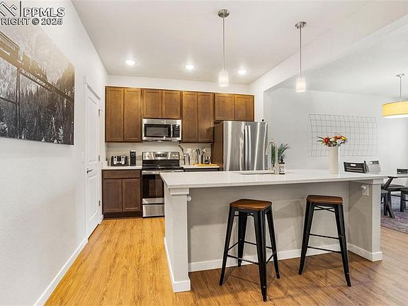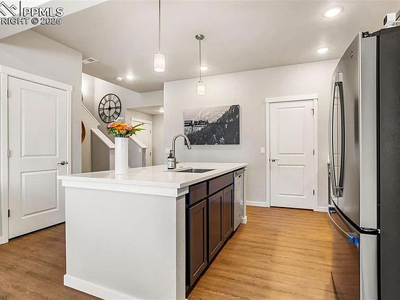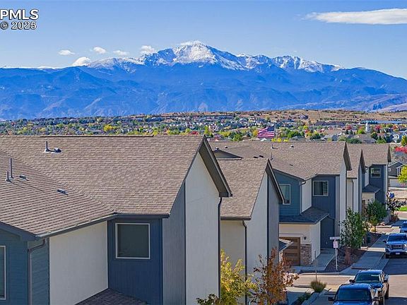 Welcome home to the immaculate, 1 owner town home built in 2021 with massive Pikes Peak Views! This home is conveniently located on the eastern side of Colorado Springs with quick access to both Schriever Air Force base and Peterson Air Force base, all the Shops at First and Main off of Powers and only 15 Minutes to I- 25. This home boasts high end finishes from quartz countertops to custom tile work in the master bathroom. Enjoy 2 bedrooms upstairs with a loft/office area for working remotely while enjoying a view of Pikes Peak and the Rocky Mountains. This office, when built could be finished out to create a 3rd bedroom, but the owner at the time preferred an office for remote working. This is a spectacular low maintenance way of life or a great investment property!