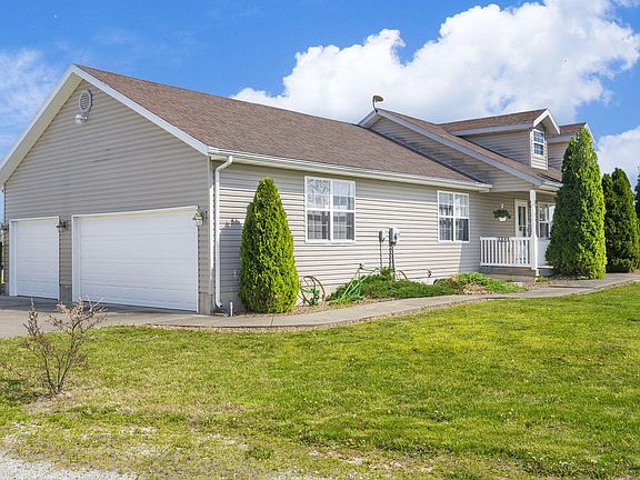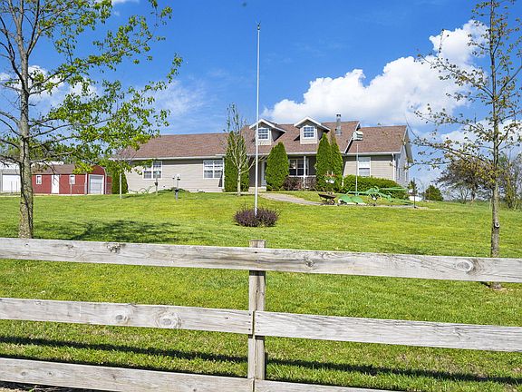 This beautiful 5 bedroom rural home sits on 2.5 acres in peaceful Brighton, Missouri. The spacious home backs up to pasture land, and the quality and comfort of this home with multiple garages and amount of storage, and additional non-conforming bedrooms available, make for endless enjoyment and uses for this property! A large side entry driveway leads to a walkout basement entrance to a large versatile room that qualifies as a bedroom, but is plumbed and was once used as a beauty salon, with a dedicated phone line and beefed-up 12 gauge 20 amp electrical. The home and out buildings are all electric, but there are heaters and plumbing in place for propane conversion in various locations throughout the home, garage and storage buildings. Red storage building and large out-building are both wired for 220. The large out-building is 55'X30', including 16'X30' office/workshop with heat and A/C and wi-fi from a repeater in the home. Other features include a basement storm room, 80 gallon hot water heater and a super-efficient Rheem HVAC system installed in 2022.Seller is providing a one year HSA Home Warranty to the new owner. Schedule a viewing today!