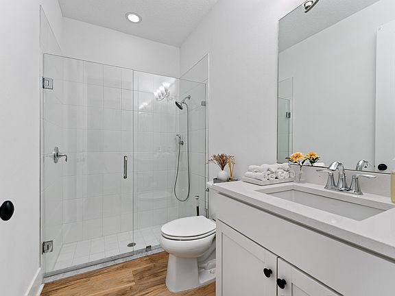Some of the notable upgrades include; Luxury vinyl flooring throughout, no carpet. Matte black door hinges door furniture. Refrigerator features dual ice makers. Smart door lock, blackout shades, 3 motorized. Whole house water softener. California style closets in the master bedroom and more. **Sq feet under air quoted does not include the garage which has its own dedicated AC unit. Cabinets in garage do not convey.