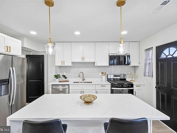 Fall in love with this brick, fully and newly renovated row home in the Edmondale Community. The open floor plan on the main level allows for the flow of abundant natural sunlight and features luxury vinyl flooring, spacious living room, large kitchen with stainless steel appliances, gas cooking, quartz counters and a waterfall island with room for separate dining. The upper level is home to three bedrooms and beautifully tiled full bath. Find the fourth bedroom and extra space for a home office, gym, rec or family room in the fully finished basement complete with new front-loading washer and dryer. The basement is waterproofed with a French drain system. HVAC and water heater are brand new. The fully fenced backyard is perfect for a private outdoor oasis.
