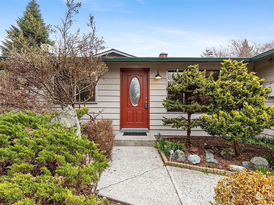 SELLER HAS VERBALLY ACCEPTED AN OFFER! Welcome home to this inviting 3 bed/1.75 bath rambler has an open floor plan with plenty of natural light. Flagstone entryway and hearths that surround the wood-burning stove and fireplace in the living room and the great room. The spacious kitchen has stainless steel appliances and granite countertops. The impressive main bedroom features both an en suite bathroom and large walk-in closet. The property is situated on a 1/4 acre beautifully hardscaped corner lot with mature trees. The fully fenced back yard allows you to enjoy tranquil evenings on the huge deck in privacy. The superb location is close to I-5, shopping & bus line to Seattle. Schedule a showing today! It won’t last long!