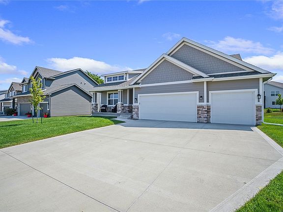 4 bedrooms+3 bathrooms Beautiful Manchester Ranch with spacious finished basement in 2021, tucked away in a quite cul-de-sac in Waterford Creek South. Open living space features vaulted ceilings, smart home technology, wood flooring, rich baltic blue island, stone counter tops, gas range and hood vent. Charming Craftsmen curb appeal with smart irrigation system, hardi siding and stone, 3 car garage and deck. Close to trails, parks, shopping, gas station and Waukee Schools!