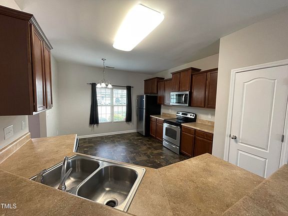 This lovely end unit townhome in Edgewater offers 3 bedrooms and 2.5 bathrooms with an open floor plan, perfect for entertaining. Freshly painted interior with new carpet. Enjoy privacy in the fenced-in yard with a wooded back lot. Community amenities include a pool, playground, and guest parking. Conveniently located near downtown Raleigh with easy access to I-440 and I-540. The listing agent is related to the seller.