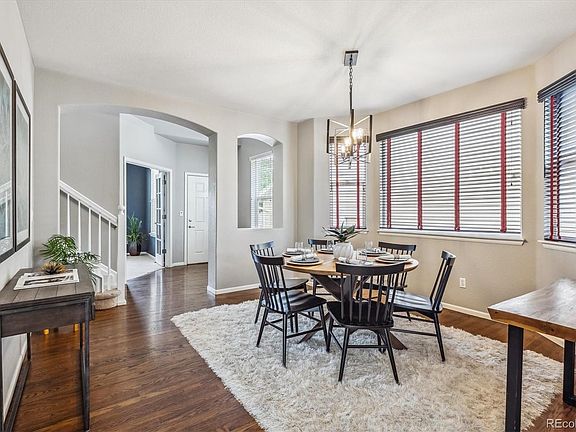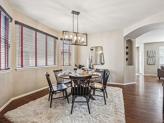 Nestled in the highly-sought after The Hearth in Highlands Ranch. This two-story residence seamlessly merges classic design with contemporary amenities. All new professional landscaping offers ample curb appeal with color and texture along with an inviting front porch. Beautiful hardwood floors, a neutral palette, upgraded lighting, and an open floor plan welcome you upon entry. Your chef’s kitchen offers granite counters, painted cabinetry with undermount lighting, new backsplash, an oversized center island, and a breakfast nook are just some of the features in this kitchen. Enjoy entertaining guests or intimate family meals in the formal dining space or step outside to a large patio in the backyard. The additional patio is the ideal spot for a fire pit to relax while enjoying the mature professional landscaping, lighting, and lush green lawn. Retreat to your primary suite, complete with a large walk-in closet and a 5-piece ensuite bath. Family movie nights or watching the big game is perfect in the finished basement featuring built-in speakers, a dual-sided fireplace, and an inviting wet bar with ample wine storage, plus a 5th bedroom with 3/4 bath. Additional features include a home office on main level, newer interior paint, new roof, an oversized 2-car garage, upper-floor laundry, and tons of storage space. Situated minutes away from neighborhood parks, trail systems, Douglas County schools, shopping, dining, and Highlands Ranch Rec Centers offering pools, clubhouses, fitness centers, and sports courts, The Hearth provides an ideal location for a vibrant lifestyle.