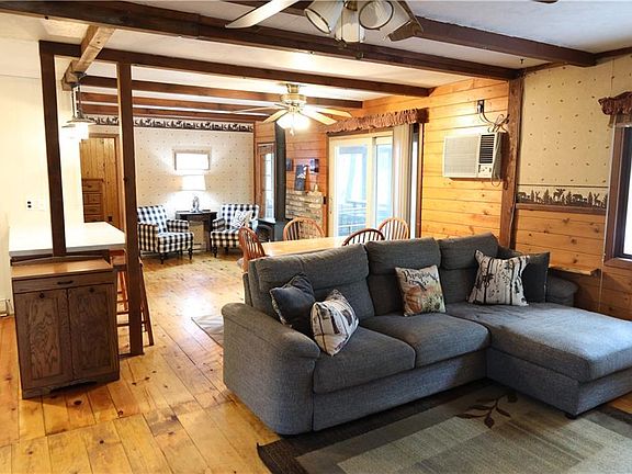 Very attractive, well cared for cabin on one of the area?s premium recreation lakes faces south and sits on a picturesque, wooded lot with a gentle slope to the water. Property accommodates fun for friends and family with 2 bedroom cabin, bunkhouse with private deck and recreation space above the oversized garage. Year around cabin has a brand-new kitchen including cabinets, center island and appliances plus all the extras on your wish list like wood floors, a wood burning stove, laundry and a large lakeside screen porch. Outdoor venues like the large deck and beautiful fire pit area are great gathering spaces to enjoy the natural environment. Ample storage for all of your gear with storage sheds for ATVs, wood and tools. Come relax at this special getaway and make it your own!