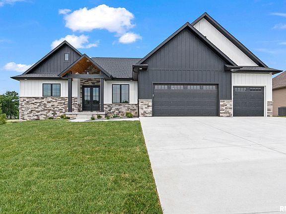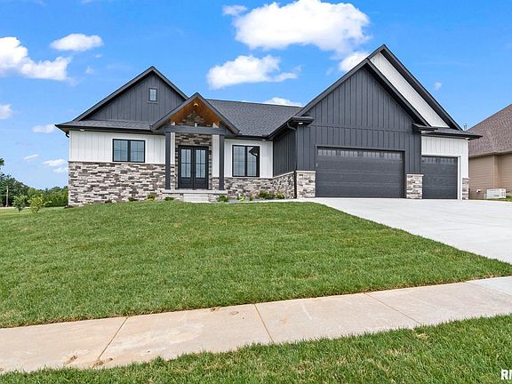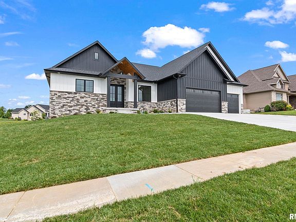 Exquisite brand new construction by Montgomery Builders in popular Savannah Pointe subdivision located on Springfield’s south west side in Chatham school district. This home boasts a full finished walkout lower level, 3 car garage & all the latest finishes including 8 foot painted black doors and Delta gold faucets throughout that elevate the design! Enter into an open concept with 11 foot ceilings & wide planked solid white oak hardwood flooring throughout main level. In the living room with gas log corner fireplace leaving lots of wall space for art. Oversized slider opens to maintenance free covered deck to watch the sunset & creates a perfect indoor/outdoor entertaining space. Timeless white kitchen with quartz tops, farm house sink, vented hood, smart walk-in pantry with custom cabinetry, coffee bar, microwave and beverage center. Large eat in area with beautiful wainscoting. Great drop zone in hallway. Split floor plan design offering a private primary suite with custom walk in closet, free standing tub, amazing tile walk in shower with rain fall shower head. Attached is an oversized laundry room with sink, cabinets and abundant counter space. 2 guest bedrooms and full bath. You’ll love the flexible space that can be a private formal dining room or main floor office. Finished lower level offers loads of natural light with wet bar, large space for rec/family room area, 3 bedrooms and full bath. The lawn is perfectly laid out for a pool or fenced area. Irrigated lawn.