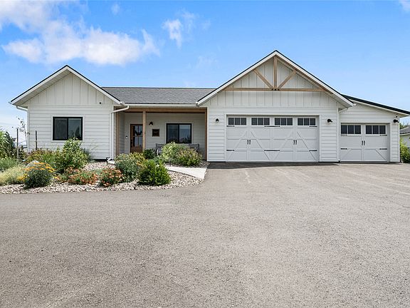 SELLER CONCESSIONS MAY BE AVAILABLE! Welcome to this stunning single-level retreat in Heron Creek, where modern luxury meets Montana charm. This 4-bed, 3-bath showpiece is packed with upgrades and includes an oversized heated shop with two insulated bays—perfect for storage, hobbies, or projects. Inside the home, enjoy an open-concept layout with vaulted ceilings, timber trusses, rich wood accents, and a cozy gas fireplace. The gourmet kitchen features an oversized island, farmhouse sink, upgraded cabinetry, induction cooktop, premium appliances, and a walk-in pantry. The owner’s suite offers a spa-inspired bath with a soaking tub, tiled rain shower, and spacious walk-in closet. With LVP flooring throughout, a 3-car heated garage, landscaped 2.28-acre lot, fenced yard, covered patio, oversized shop, and mountain views, this home is gently lived in, beautifully designed, and truly move-in ready! Every detail of this home was designed with comfort, style, and functionality in mind! Originally built as the model home, it showcases upgrades rarely found elsewhere. The chef’s kitchen features under-cabinet lighting, premium appliances, an induction cooktop, a dream walk-in pantry, upgraded custom cabinets showcase pull-outs, roll-outs, and specialized cubbies. The owner’s suite includes a timbered tray ceiling, black Andersen windows, and a spa-inspired bath with a freestanding soaking tub, oversized tiled shower with rainhead, and large walk-in closet.