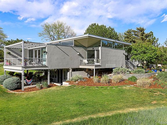 This rare gem of a contemporary home with extraordinary mountain views nestled on 3/4 of an acre of lawn, was nationally awarded one of the most significant homes for the year it was built and exquisitely designed to exploit light and form on both levels. A celebration of rich architectural styling is enhanced by a band of windows below the roof creating a unique floating effect which must be experienced! The expansive open staircase to the lower level is a centerpiece of the home and is perfect lifestyle choice with a Main floor master bedroom, gourmet William Ohs gorgeous kitchen, exotic glass wine cellar, expansive outdoor terraces, as well as a walkout lower level with 2 additional bedrooms, both with brand-new bathrooms. Discreetly located on a cul de sac in Greenwood Hills the home evokes a sense of country backing to open space, yet in coveted Cherry Creek Schools, so close to amenities. Celebrating a contemporary open lifestyle, the architecture is timeless and sought after by so many. Note: Seller will sand and refinish floors to desired finish for new Buyers upon move out and closing. PLEASE OBSERVE COVID19 GUIDLEINES AND WEAR MASKS AND GLOVES AT ALL TIMES IN THE HOUSE.