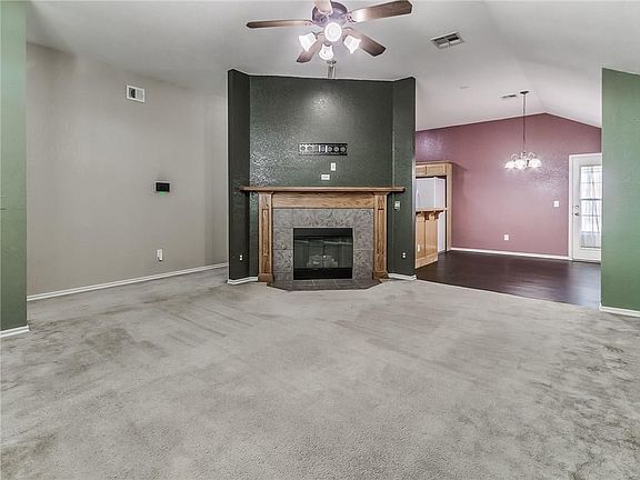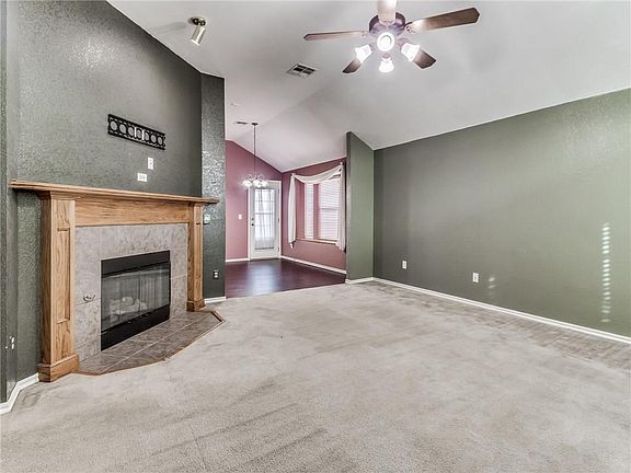 This great 4 bedroom home offers lots of storage and cabinet space throughout. The guest bedrooms are a nice size where Queen size beds could fit comfortably and the rooms offer walk in closets. Dining area has new wood floors and there are fresh painted rooms. Kitchen has large drawers, lazy susan, counter space, new dishwasher (quiet), and lots of cabinets along with a raised bar sitting area that can hold for people. The back yard: there is a covered patio and a hot tub with a nice deck, and a new fence that also includes metal posts...Oh and a shed so nothing has to be in the garage. The garage has shelves and cabinets and is over sized. This home is in a great community just minutes from I-240, Tinker, Downtown, and I-35. This community has a nice park and offers two ponds.