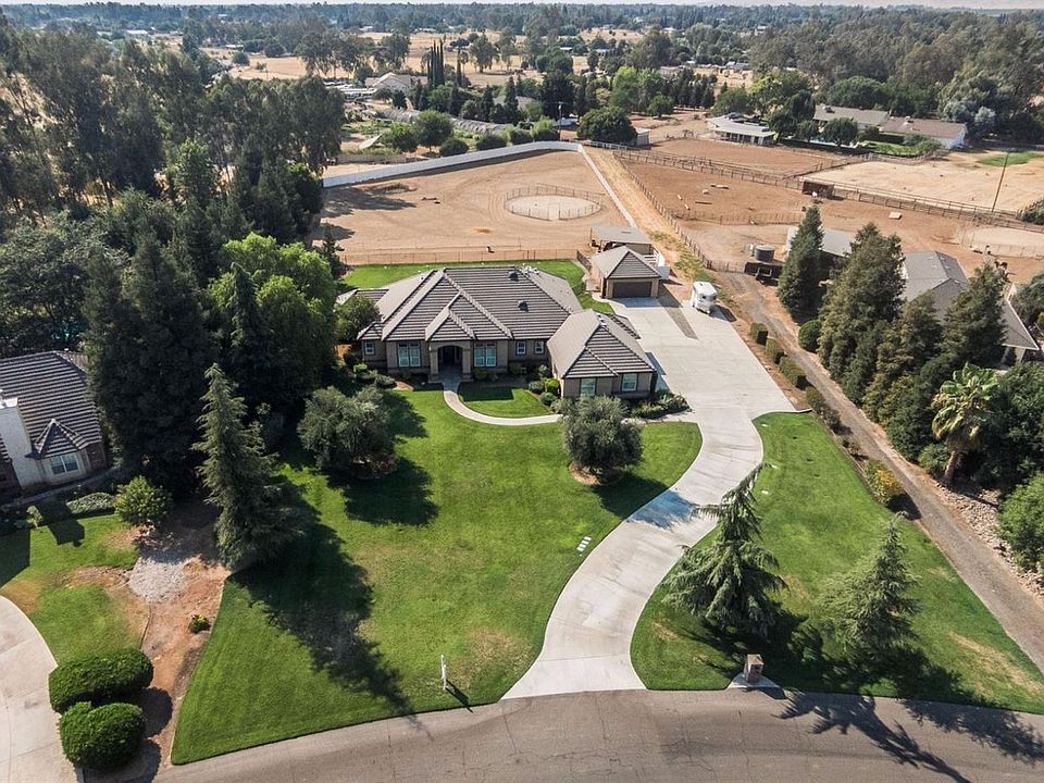 Country living at its finest! Welcome home to the Polo Ranch. A beautiful subdivision of 54 homes all on 2 acre parcels. This single story home has it all with 4 bedrooms, 3.5 bathrooms, 5 car garage, pool, horse set up and Clovis Unified School District. This beautiful home has a fantastic floor plan with the master and one bedroom at one end, and the other 2 bedrooms on the other. The kitchen is open to the family room which overlooks the back acreage and features a cozy fireplace. The bathrooms and kitchen all feature granite counter counter tops and stainless steel appliances. The color palette throughout is warm, neutral and inviting. The property features lots of grass for the kids to run, a swimming pool and spa, and room for the horses too.There is a 2 horse stall and a large enclosed area with white vinyl fencing to roam. The Polo Ranch also features a nice bridal path for leisurely walks. Lots of room for parking and space for a horse trailer or RV.