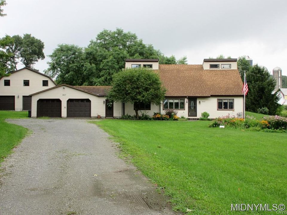 Unique country home sits on 5+ beautiful acres. This home offers an open floor plan with hardwood floors, new quartz counters, cathederal ceilings with balcony overlooking first floor. Storage galore throughout. Large deck overlooks backyard and huge detached garage 32 x 40 with finished 16 x 40 upstairs man cave. With public water and natural gas and low Lee taxes. Dont miss this one!