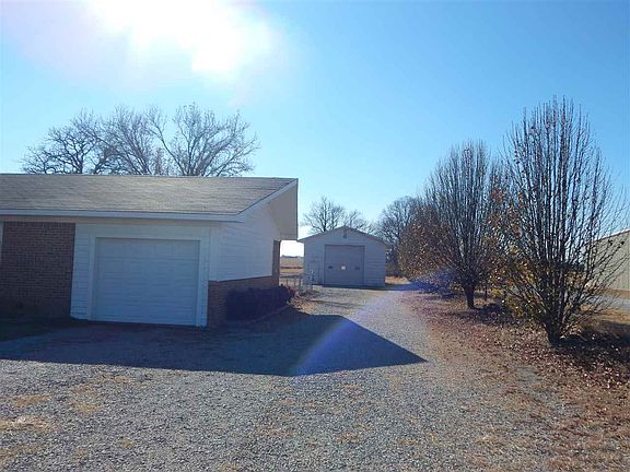 REDUCED! Absolutely Move-In-Ready. New carpet in the bedrooms and fresh paint, a nice size living with newer wood-look flooring plus a kitchen with new appliances will impress any buyer. The sun room gives space for another bedroom, den, exercise or game room. The washer and dryer hook ups are in an enclosed area in the garage Outside is a nice storm shelter and huge garage/shop useful for an RV parking or room for lots of equipment. Refrigerator, washer and dryer will remain with acceptable terms. NOTICE!!: THERE ARE DOGS IN THE BACK YARD. PLEASE DO NOT GO OUT THERE. The key to the garage/shop will be in the house. Ask for details.