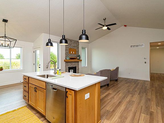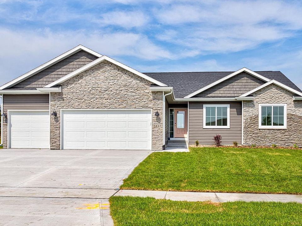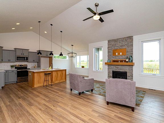 Enjoy Happe Homes Cheyenne, 1608 floor plan, complete with 5BR's, 3 baths, a spacious great room with vaulted ceilings & a floor to ceiling stone fireplace. White cabinets, hard surface flooring in great room, beautiful curb appeal, and a finished lower level with a family room, wet bar, and 2 BR's with a 3/4 bath!