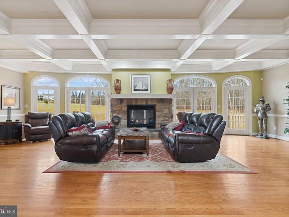 SPACIOUS & GRACIOUS! Drive down a tree lined cul-de-sac of just three homes to this exquisitely detailed luxury five Bedroom 5200+ sq ft property. Extensive custom woodwork throughout. Three fireplaces. Great room open to superb gourmet Kitchen.... Enter fabulous foyer with site finished hardwood, true custom wainscotting, and impressive staircase. See through to the Great Room (used for casual living or entertaining) with detailed coffered ceiling to the true stone fireplace. The fireplace is flanked by oversized French doors to view the huge deck and bucolic rear 4.5 acres. The Great Room is open to the Kitchen with amenities that include timeless cherry cabinetry, granite countertops and subway tile backsplash. A 14 ft, multi-level, island will certainly impress. Some of the additional high-end details of the Kitchen include a Sub-Zero Refrigerator, Dacor stainless steel appliances including double wall ovens, warming drawer and 6 burner propane stovetop. A well-located service area includes a pull-out pantry and bar sink and wine fridge. The breakfast area has room for all and there is also a large Dining Room for your more formal affairs. The stately Study boasts a floor-to-ceiling built in. Well situated away from the heart of the home is a stunning room - most recently used as a formal Living Room but could double for a Family Room. Extensive floor-to-ceiling woodwork surrounds a gas fireplace, and a private covered deck and patio can be found here. Also on this level is an upgraded Powder Room and Laundry/Mud Room with 2nd powder room, outside access, and entry from the 3-car garage. Ascend to the second level from the main staircase or the back staircase conveniently located near the Kitchen. The Main Bedroom suite is a "Knock Out". It is great in size, has an amazing 2-tiered lighted tray ceiling, and a 2-sided fireplace from which you can see through to the sitting area, There is also a huge main walk-in closet plus two additional double closets. The oversized main Bathroom has an 8 X 5 glass shower, jetted tub, large double solid surface vanity, and more. The four additional large Bedrooms, all (except one)have walk-in closets; one includes an ensuite bath. There are Jack and Jill Baths for two of the additional Bedrooms, with a hall entry for the additional Bedroom . The almost 2000 sq ft, Finished Basement with Full Bath is very versatile - enough open space to transform to any lifestyle. On the exterior you'll enjoy both privacy and views from the enormous rear deck or the separate covered deck and patio.