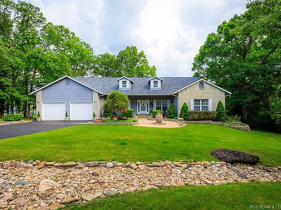 Gorgeous and spacious home, sits on 4 acres in the heart of Osage Beach. You will love all the room this 5400 square feet home and property has to offer. Features include 2 full kitchens, 4 bedrooms, 5 baths, granite tops in kitchen and bathrooms, formal dining room, 2 large native stone fireplaces, jetted tub, tons of cabinet and storage. Large media/theater room is perfect for entertaining the entire family. Game room separated by fireplace from large family room on the lower level. Fantastic sunroom with large deck from main level. Stamped concrete patio on lower level. 2 car garage. Automatic irrigation for the perfectly landscaped lawn and flowers. Community pool is just down from back yard of home . Complete package includes 10 x 28 boat slip in community dock. Come see this home today and prepare to be impressed!
