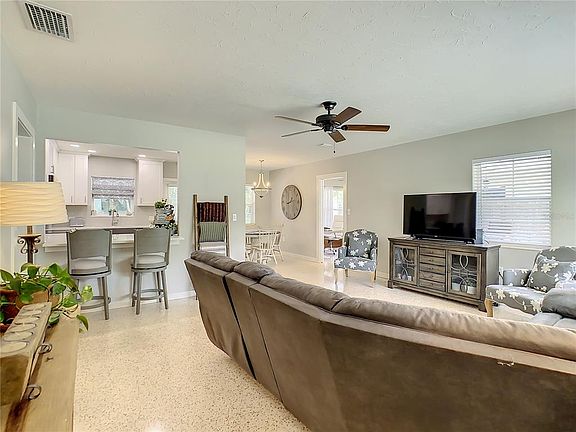 Darling, Renovated 2 bedroom home with den in popular Harbor Hills. Light & bright open floor plan with living room, kitchen & dining area combined. Polished terrazzo floors throughout making clean up easy. Chefs delight with this completely remodeled kitchen with breakfast bar & eat-in area. Lovely quartz counters with large cabinets that provides organized storage. LED lighting, stainless steel double sink, GE stainless steel appliances include 33 inch french door refrigerator with counter depth profile, self cleaning oven, microwave, and dishwasher. Remodeled bathroom with combo bath & shower is shared by both bedrooms. Den can be used for additional bedroom or office. Interior painted in 2020 with designer colors & Exterior paint in 2022. Many extras. Cordless blinds throughout, Hurricane impact resistant Front door & side door,. House replumbed & replaced hot water heater in 2018. Roof replaced in 2017 with hurricane straps. Carport has new concrete slab with footers and support beams replaced (carport & porch) in 2021, great for easy garage conversion. Air conditioner with heat pump in 2011. All ceiling fans, lights, interior doors, hardware & trim replaced in 2020. Many of the windows have been replaced. Laundry room, off the carport, includes 2nd bathroom, shower & toilet with sink hook up. Maytag washer and dryer included in sale. Large corner lot, fenced back yard ,plenty of room for pool, RV & boat parking. No HOA or CDD. Harbor Hills is known for their beautiful Cuban Laurel trees forming a canopy down Fontana Lane that borders this property. Close to Anna Maria Island, Shopping, Hospitals & Warner's Bayou Boat Ramp.