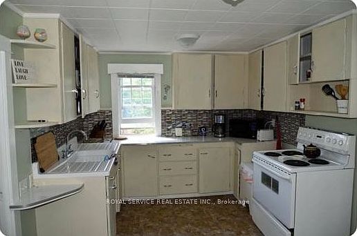 Charming 1935 Home Lake Views and Rich History, this delightful home , originally built in 1935 in Gores Landing, was impressively relocated across frozen Rice Lake by a team of horses to its current location- a storybook piece of local history! Once a seasonal cottage and later later a full-time residence, it now offers the perfect blend of character and potential. Step into the cozy three season sunroom, leading into the kitchen and through to the dining room featuring original hardwood floor. The living room and two bedrooms are comfortably carpeted, and there is a classic 4-peice bathroom. A full unfinished walkout basement provides plenty of opportunity for future development. Set on a generous lot with lovely lake views, this home is a short stroll to lake access at Stoney Pier Parkette or the Harwood Public Dock.