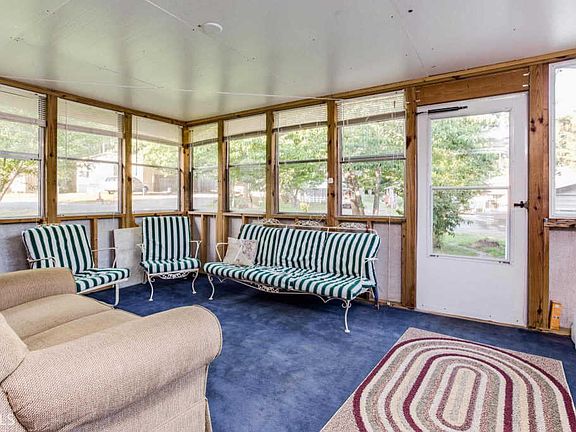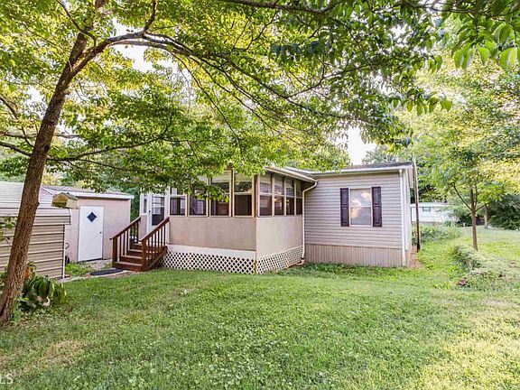 All the necessities! The front porch sun room, combined with an open-concept living room and laminate kitchen with electric appliances, has ample space for lounging. Master on main with split bedroom plan and walk-in closets are sure to please. This home shares its 0.12 acre wooded corner lot with an outbuilding. Level driveway leads to a covered carport. Community features pool, tennis, playground, park, and community boat dock.