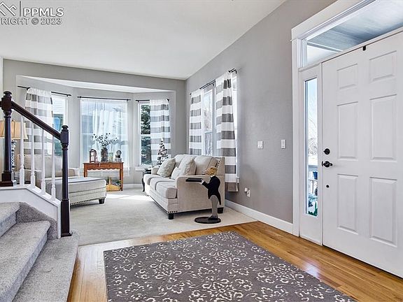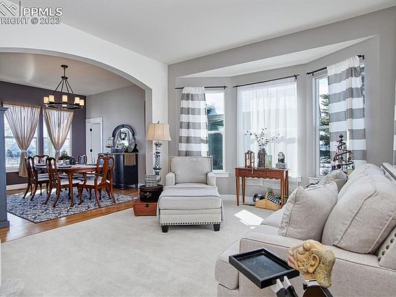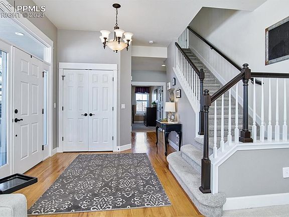 Welcome home to this peaceful acre lot in Castlewood Ranch with huge front porch! Upon walking into the entrance foyer, you are greeted with plenty of natural light bouncing off the walls & vaulted ceilings. To the right, your living room is the perfect hangout space, with bay windows, views to the front yard and adjoins into the formal dining area. The chef's kitchen has everything you need including a large granite eat-up island, separate pantry, gas cook top & double ovens. This space also hosts a breakfast nook looking out to the huge backyard. After eating in the kitchen you can cozy up next to the fireplace in the comfortable family room with custom stack stone surround & reclaimed wood mantle! The office on the main floor is big enough for two to work from home. The powder room & laundry/mud room complete the main floor. Moving upstairs, you will find 3 extra bedrooms with a dedicated full bathroom. The spacious owner's suite is bound to make all your friends jealous with a sitting area, walk-out deck to soak in the views of Pikes Peak & an adjoining five-piece bathroom with fresh paint & new fixtures! Heading into the basement feels as if you are stepping into another home with tons of extra space! The rec room is the perfect space to entertain with plenty of room for a pool table, bar, and as big of a TV as you can dream of! This area hosts another bedroom, fantastic full bathroom, a workout space as well as a bonus space currently being used as an art studio. Heading out into the yard, the granite rock outcroppings, native landscaping & mature trees makes for a perfect place to take in mother nature and even some deer! Rather than backing to another home, you will love backing up to Matney Park. Last but certainly not least, the oversized 3 car heated garage is set with storage cabinets, additional lighting & separate entrance to access the backyard. Don't wait to see this one of a kind property, it does not disappoint!