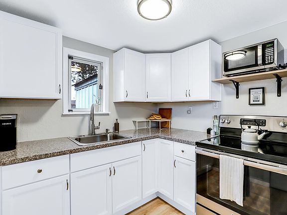 This adorable vintage Spokane bungalow has been COMPLETELY updated in the last few months! It is located in a quiet neighborhood in Northwest Spokane, and it is fully move-in-ready. Originally designed as an Airbnb, this home can come fully furnished if the buyer desires. The kitchen has granite counter tops, soft close cabinets, and newer appliances. The bathroom has also been recently updated! The yard is fully fenced and has plenty of room for a large shop or carport in the future. The small patio outside the kitchen is perfect for entertaining and barbecues!