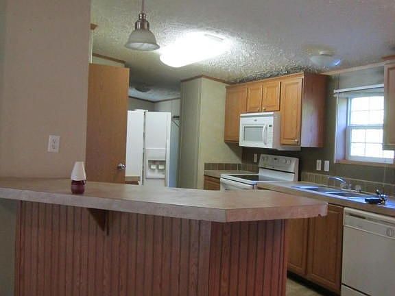 Double wide located on 3+/- acres features a split three bedroom floorplan, two baths, kitchen dining area, bar height counter with pantry and laundry area.