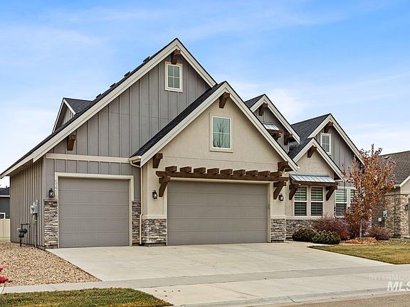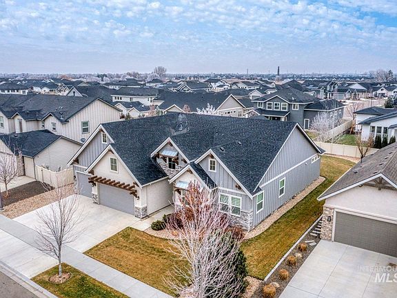 Say hello to your new home in Sky Mesa, one of the most sought-after neighborhoods in Meridian! This stunning single-level custom home lives large, with four bedrooms PLUS an office! You are welcomed with soaring 12 foot ceilings in the entryway and 10 foot ceilings throughout the home. You will love the open concept kitchen and great room, and appreciate the privacy of the split bedroom floor plan. The master suite offers your own private luxury retreat, and floor to ceiling windows fill the home with natural light. The nearly 1/3 acre lot has ample room in the east-facing backyard, where you will love hosting gatherings to take advantage of long summer evenings. Steps away from your front door is one of the best community pools in the valley, along with a basketball court, parks, and plenty of walking paths. Schedule your showing today!