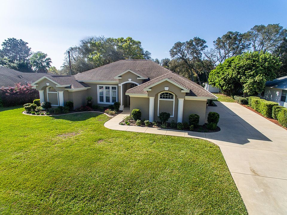 This stunning 2002 Centerstate custom built 3 bedroom, 2 bathroom home looks like it was just completed in 2019. The sellers have taken immaculate care of this 2973 square foot home and it shows inside and out. As you arrive you will notice the lush irrigated lawn and landscaping with concrete curbing, and many various ornamental plants and decor. Over 12' archway and stunning entrance door welcomes you into the 2053 living square foot home. Upon entering you will see soaring ceilings, plant shelves and lighted niches, 16x16'' ceramic tiles which carries through into the kitchen and updated engineered wood floors(also in Family Room). Cozy sitting area is in front of the home overlooking spacious dining area and french doors leading to the 23'x11' screened patio with views of yard!