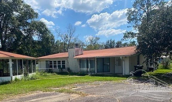 Welcome to 5418 Saufley Field Road, a spacious estate offering country living with convenience just minutes from the heart of Pensacola, near NAS back gate. Drive through the gated, circular driveway into a home brimming with potential. The bright, naturally lit interior features an open split-floor plan with two expansive primary suites, each with private baths — perfect for multi-generational living or guest accommodations, and easily convertible to additional bedrooms, if desired. Detached 2-car garage with ample storage or workspace area. Large outdoor spaces with a gazebo and pool area — a blank canvas for landscaping, gardening, or recreation This residence sits on 2.66-acre parcel, providing privacy, mature landscaping, and room for outdoor enjoyment — ideal for families, hobbyists, or those seeking room to roam. AS IS - Multiple properties are available to purchase. Buyer to verify all measurements, room counts, zoning, and permitted uses.