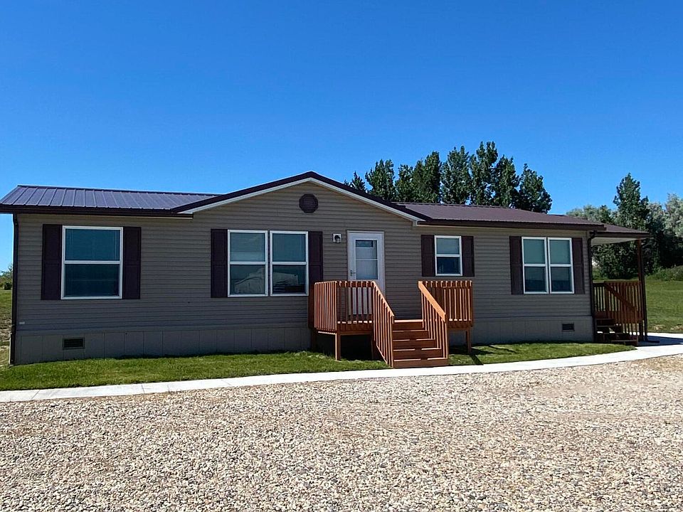 Retreat to your very own personal oasis on 3.48 acres just a couple miles west of town. As you turn into the driveway, be welcomed by the beautiful custom address marker to the left. Moving along the driveway, look off to the right to check on the luscious vegetable garden. Maybe stop to harvest something for dinner. Only a few more feet and your home! Enter through the enclosed mudroom (heat source for the winter months), where you can leave all the stress of the day . . . and your shoes, coats, and backpacks! From there, just a quick pass through the laundry room before entering the kitchen/dining area where you can grab a snack, pull up a chair at the table and watch the birds and wildlife coming in from afar to feed at the feeders. Beyond the kitchen is the living room, two BR's, a full bath, master bedroom with full bath and walk-in closet. Minor updates to the interior of the home include sinks, backsplash and flooring in the bathrooms, a new kitchen sink, steel roof and rain gutters to the exterior. It's been a long day and you want to relax outside for a bit, not a problem! You can enjoy the evening under your covered porch or move out under the stars to the poured concrete patio. Great place to extend your entertaining options and your personal touches with an outdoor seating group, firepit, or maybe even build a custom wood fire pizza oven! Need extra space to work on small projects, head on over to the first of two large sheds which will make a great workshop as it's insulated, heated, and wired for 220. Alongside this shed is RV parking with a 30/50 amp hookup to keep your rig plugged in and ready for company, or your guest RV. The second large shed would be great as extra storage for your lawn and garden tools, as well as other odds and ends. If all that isn't enough to grab your attention, the 32' x 48' garage with (2) 9' overhead doors, steel roof and siding will! Finished, insulated and heated 1,535 sq ft of workspace and storage for all the vehicles and toys and then some. Upon entering, you will come upon an enclosed area that is currently being used as storage but is equipped to be an office with its own heating source. The interior of the garage has 200 amp, 220V outlet, floor drain, window a/c to help cool the work area space which includes a refrigerator and some built-in cabinetry. We aren't finished yet! Also included are apple and pear trees, (3) raised-round flower beds, and a playset for the kids. To end this tour, turn around, face the east, south or west, take a deep breath and take in the most spectacular view for miles! Pride of ownership is abundantly apparent and an absolute must see in person.