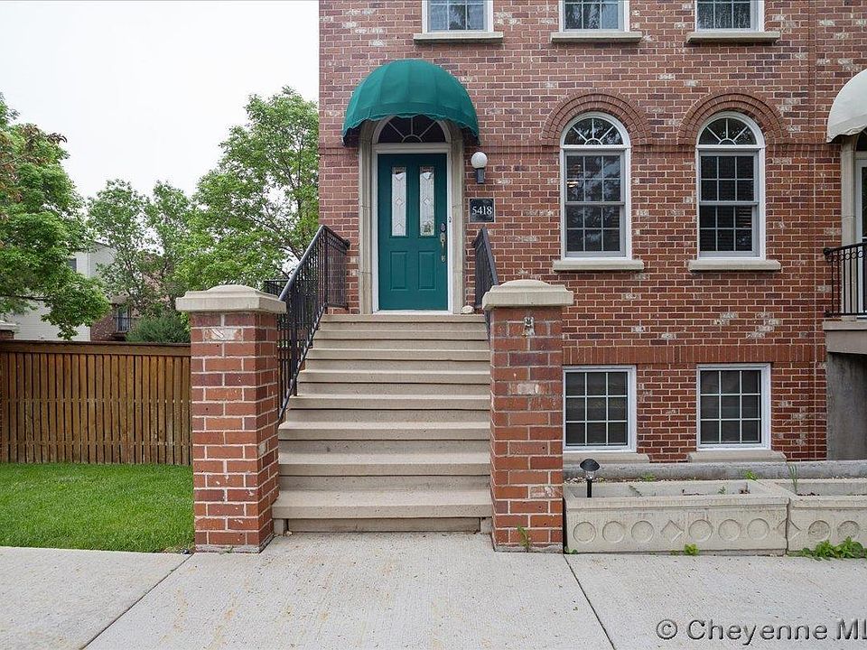 Here's your opportunity to own a distinguished Grace Manor Brownstone in Cheyenne! This elegant end-unit townhome is nestled in a serene, tree-lined enclave, just steps from the greenway, restaurants, shopping and schools. This townhome features additional skylights and windows, flooding the interior with natural light. The fenced yard offers ample space for private gatherings, while the family room ensures comfortable and easy living. Don’t miss the chance to make this exquisite property your new home.