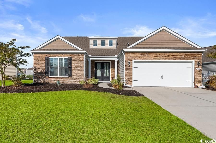 Welcome to your dream single-level oasis in The Farm of Carolina Forest! This exquisite 3-bedroom, 2 1/2-bathroom home with an oversized 2-car garage is a true gem in the world of real estate. As you step through the double doors into the foyer, you'll be greeted by the rich, dark wood-look tile flooring that flows seamlessly throughout the spacious open floor plan. The high ceilings and custom built-in shelving in the living area create an atmosphere of grandeur and sophistication. The heart of this home is the stunning kitchen, which features top-of-the-line stainless steel appliances, a gas range, and an oversized island with a breakfast bar that's perfect for casual dining. The adjacent breakfast nook is bathed in natural light, making it the ideal spot to start your day. But the real showstopper is the panoramic view of the tranquil pond that you'll enjoy from the large windows in both the living and dining areas. Whether you're hosting a dinner party or simply unwinding after a long day, this view will never cease to amaze. The primary suite is a true retreat, boasting a stylish tray ceiling and French doors that lead to the ensuite bathroom. Inside, you'll find a double sink vanity, a deep soaking garden tub, and a step-in shower - perfect for indulgent relaxation. Two generously sized guest rooms offer ample space for guests and share access to a beautifully appointed guest bathroom with upgraded fixtures. This home is designed for both elegance and comfort, with every detail carefully considered. The custom landscaping adds to the curb appeal, and the oversized 2-car garage provides plenty of space for your vehicles and storage needs. Step outside to the back patio, where you can host backyard barbecues and gatherings while taking in the serene water view. Whether you're sipping your morning coffee or enjoying an evening sunset, this space will quickly become your favorite retreat. The Farm offers a community pool, walking trails, and is centrally located to provide easy access to US-31 and US-501. Just a short drive to the beach, area attractions, shopping, and dining. Don't miss the opportunity to make this exceptional home your own. With its open floor plan, top-notch features, and stunning views, it's a true masterpiece of modern living. Schedule your viewing today and experience the epitome of luxury in a single-level setting.
