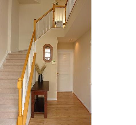 Great Living in this 3 BR 2.5 Bath Townhouse in swim/pool community! Deck and Patio enjoy views of the wooded buffer beyond. Fresh paint throughout! Hardwood and tile floors. Kitchen features center island with Stainless Appliances. VAUTLED ceiling in Master BR. This one is completely move-in ready. Great schools & backs up to Woods! New Carpeting!
