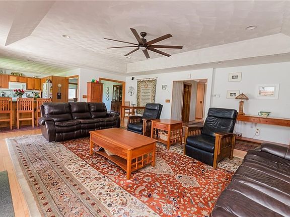 This custom designed 20-year-old 4-bdrm Executive Ranch has been meticulously maintained. The entry foyer leads to an expansive bright living rm with coffered ceiling, Bose surround sound, fireplace, a wall of wndws overlooking rear yard and a bright modern open floor plan. The great room concept leads to a custom kit. with picture wndw, pantry, and solid cherry cabinets. Two sets of French Doors lead from the LR to the rear deck and a acre landscaped private rear yard with patio& ideal for entertaining or relaxing. The finished bsmnt features a wet bar, built-in bookshelves, workshop, exercise area, game rm and plenty of storage space with built in shelves. Additional features include seamless gutters with leaf guard covers, vinyl decking with sun-setter shading system, 2x6 construction, hrdwd flrs throughout, natural woodwork, solid stained wood panel drs, glass paneled closets, 200 AMP service wired for generator, central air, first flr laundry, garage workshop, ceiling fans in all bdrms, recessed lights, and jacuzzi in master bth. The location is ideal - Camillus Park, local churches, restaurants, shopping and other area attractions are within walking distance. 2021-08-28