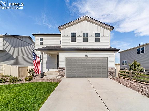 Welcome home! Enjoy all of the upgrades and love poured into this home! As you enter the home you'll find that the entire main floor has been tiled ready to withstand snowy boots, muddy paws and the inevitable food and drink spills! The kitchen features upgraded 42" white cabinets, quartz countertops, backsplash and lights. Cozy up to the fireplace as you enjoy your favorite movie with surround sound! Step through the extra large sliding doors onto the oversized patio for grilling and beautiful sunshine. The backyard has been fully fenced and turf added for easy maintenance and budget friendly use. Upstairs you'll enter into the loft; the perfect flex space! The primary bedroom features a walk in closet and en suite bathroom with double vanity, tile floors, and let's not forget the comfort height toilet! Enjoy the convenience of two more bedrooms, laundry room (super convenient), and additional full bathroom all on the same level as the primary bedroom. Other features that deserve an honorable mention include the AC, 8' garage door, and radon system! This home is in the new community The Trails at Aspen Ridge which is perfectly situated close to Peterson SFB, Schriever SFB, Ft Carson, the airport, shopping, schools, and Powers corridor.